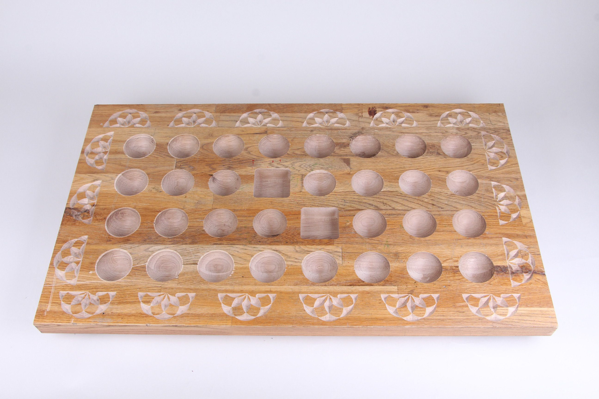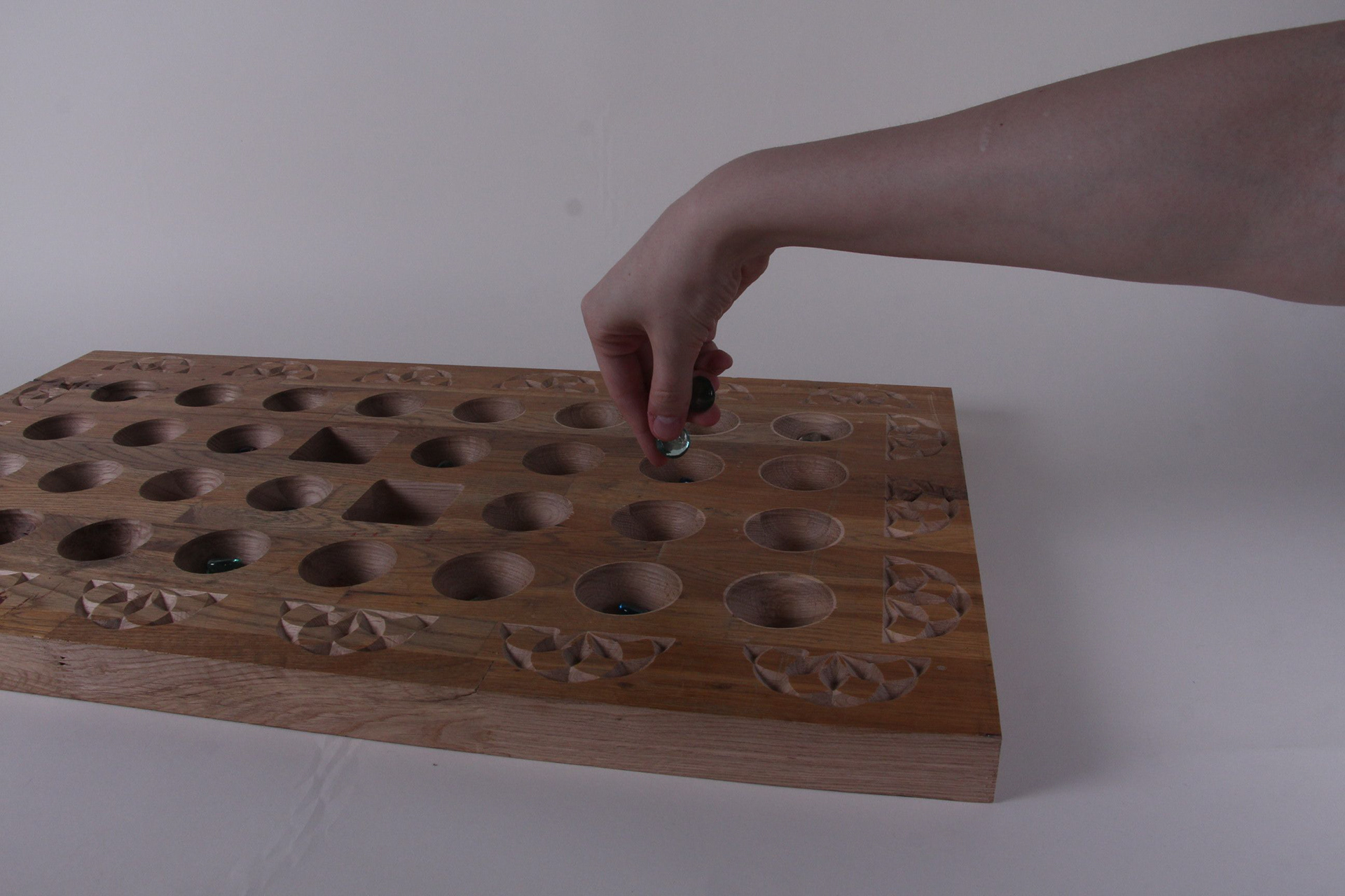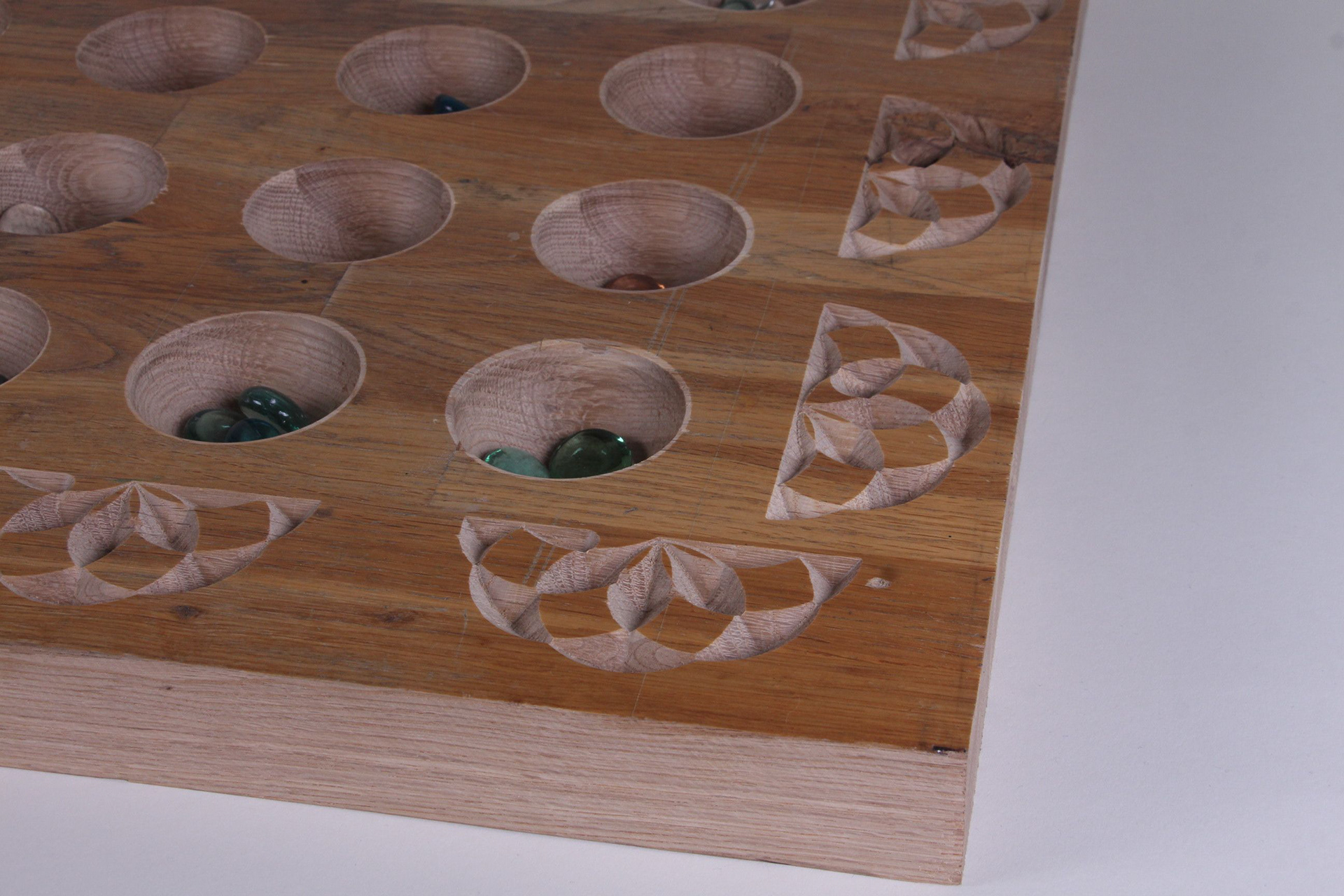 This project was inspired by the game of Bao or Mancala the way it is played in Zanzibar. The board was designed in Fusion 360 with a floral, Islamically inspired decal on the edges. The project was an exploration into using a CNC machine and table saw as well as in woodworking in general. Skills: Woodworking, Table saw, CNC machine, CAM, CAD